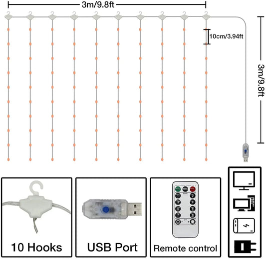 Window Curtain Light,Usb Plug-In Fairy Lights with Remote for Bedroom,Wedding,Christmas(Warm White)